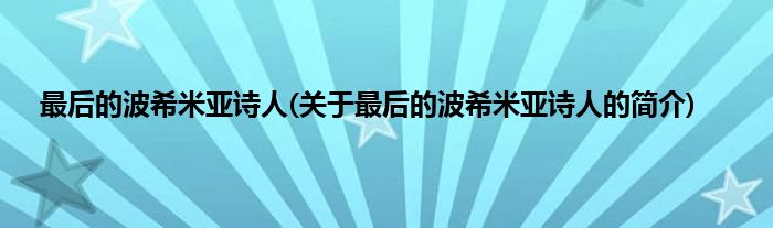 本文关于最后的波希米亚诗人的简介就讲解完毕,希望对大家有所帮助。