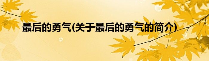 本文关于最后的勇气的简介就讲解完毕,希望对大家有所帮助。