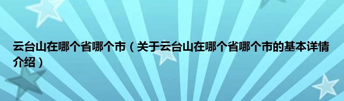 本文关于云台山在哪个省哪个市的基本详情介绍就讲解完毕,希望对大家有所帮助。