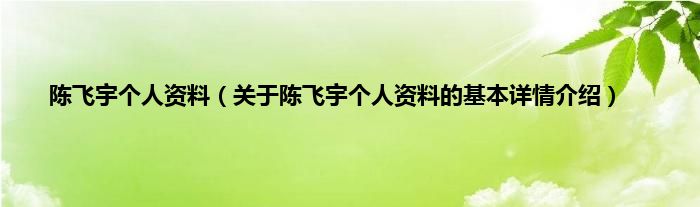 本文关于陈飞宇个人资料的基本详情介绍就讲解完毕,希望对大家有所帮助。