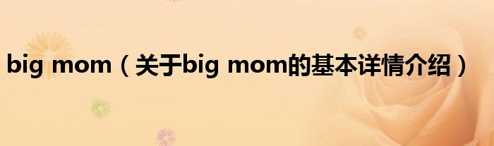 本文关于big mom的基本详情介绍就讲解完毕,希望对大家有所帮助。