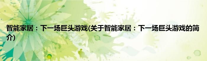 本文关于智能家居:下一场巨头游戏的简介就讲解完毕,希望对大家有所帮助。