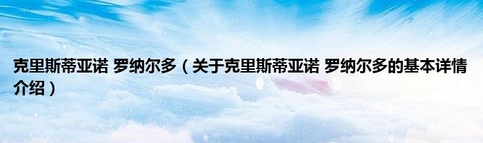 本文关于克里斯蒂亚诺 罗纳尔多的基本详情介绍就讲解完毕,希望对大家有所帮助。