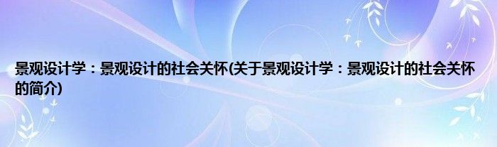 本文关于景观设计学:景观设计的社会关怀的简介就讲解完毕,希望对大家有所帮助。