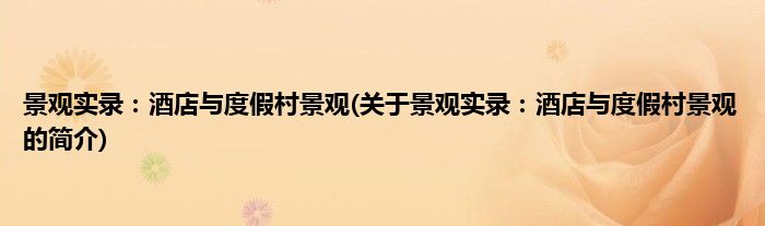 大家好,景观实录:酒店与度假村景观,关于景观实录:酒店与度假村景观的简介很多人还不知道,现在让我们一起来看看吧!