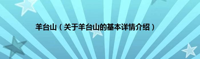 本文关于羊台山的基本详情介绍就讲解完毕,希望对大家有所帮助。