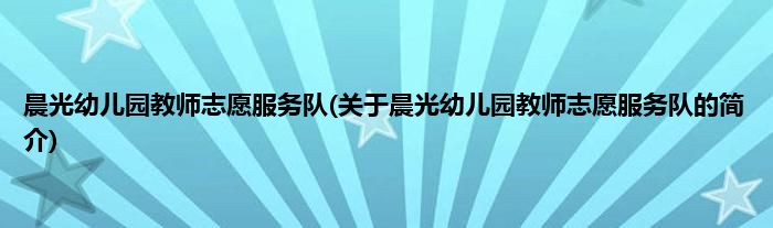 大家好,晨光幼儿园教师志愿服务队,关于晨光幼儿园教师志愿服务队的简介很多人还不知道,现在让我们一起来看看吧!