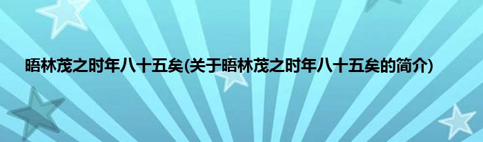 大家好,晤林茂之时年八十五矣,关于晤林茂之时年八十五矣的简介很多人还不知道,现在让我们一起来看看吧!