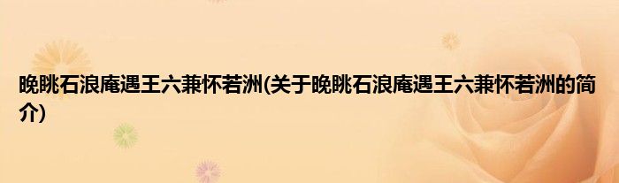 本文关于晚眺石浪庵遇王六兼怀若洲的简介就讲解完毕,希望对大家有所帮助。