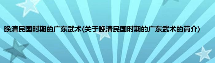 大家好,晚清民国时期的广东武术,关于晚清民国时期的广东武术的简介很多人还不知道,现在让我们一起来看看吧!