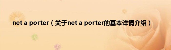 本文关于net a porter的基本详情介绍就讲解完毕,希望对大家有所帮助。