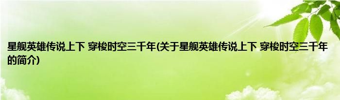 大家好,星舰英雄传说上下,穿梭时空三千年,关于星舰英雄传说上下,穿梭时空三千年的简介很多人还不知道,现在让我们一起来看看吧!