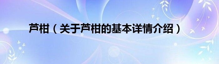 本文关于芦柑的基本详情介绍就讲解完毕,希望对大家有所帮助。