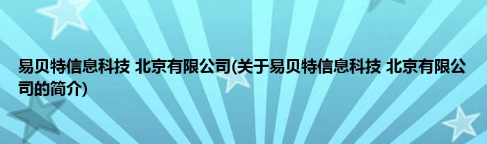 本文关于易贝特信息科技 北京有限公司的简介就讲解完毕,希望对大家有所帮助。