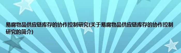 易腐物品供应链库存的协作控制研究(关于易腐物品供应链库存的协作控制研究的简介)