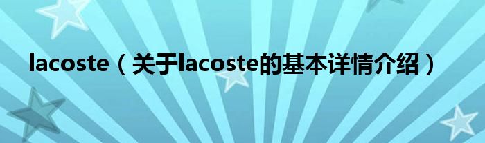本文关于lacoste的基本详情介绍就讲解完毕,希望对大家有所帮助。