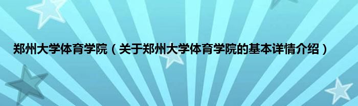 本文关于郑州大学体育学院的基本详情介绍就讲解完毕,希望对大家有所帮助。