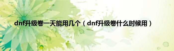 大家好,精选小编来为大家解答以上问题。dnf升级卷一天能用几个,dnf升级卷什么时候用很多人还不知道,现在让我们一起来看看吧!