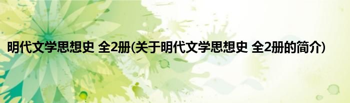 大家好,明代文学思想史 全2册,关于明代文学思想史 全2册的简介很多人还不知道,现在让我们一起来看看吧!