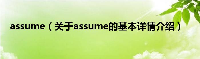 本文关于assume的基本详情介绍就讲解完毕,希望对大家有所帮助。