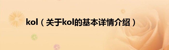本文关于kol的基本详情介绍就讲解完毕,希望对大家有所帮助。