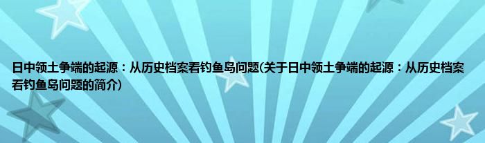 本文关于日中领土争端的起源:从历史档案看钓鱼岛问题的简介就讲解完毕,希望对大家有所帮助。