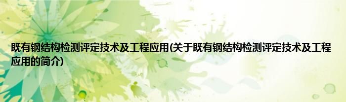 本文关于既有钢结构检测评定技术及工程应用的简介就讲解完毕,希望对大家有所帮助。