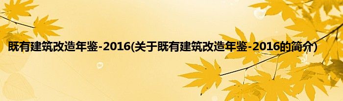 既有建筑改造年鉴-2016(关于既有建筑改造年鉴-2016的简介)