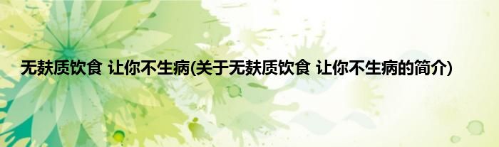 无麸质饮食 让你不生病(关于无麸质饮食 让你不生病的简介)