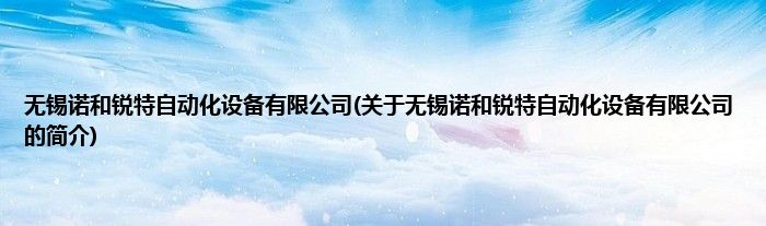本文关于无锡诺和锐特自动化设备有限公司的简介就讲解完毕,希望对大家有所帮助。
