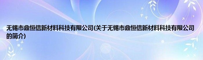无锡市鼎恒信新材料科技有限公司(关于无锡市鼎恒信新材料科技有限公司的简介)