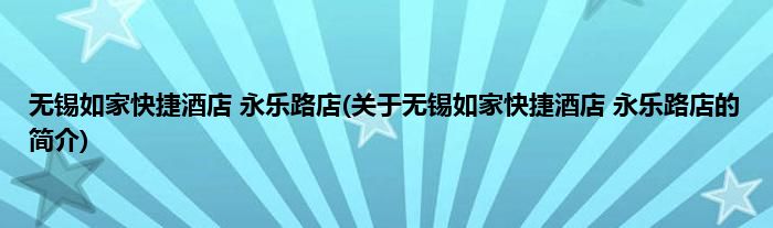无锡如家快捷酒店 永乐路店(关于无锡如家快捷酒店 永乐路店的简介)