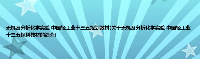 本文关于无机及分析化学实验 中国轻工业十三五规划教材的简介就讲解完毕,希望对大家有所帮助。