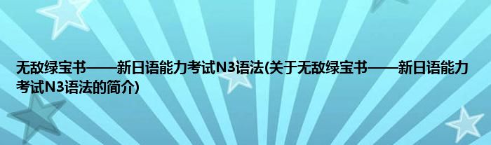 本文关于无敌绿宝书——新日语能力考试N3语法的简介就讲解完毕,希望对大家有所帮助。