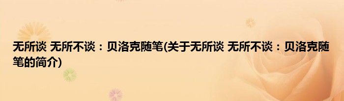 2、无所不谈贝洛克随笔》是2009年东方出版中心社出版的图书。