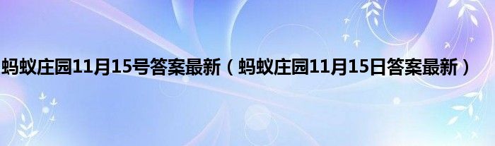 大家好,精选小编来为大家解答以上问题。蚂蚁庄园11月15号答案最新,蚂蚁庄园11月15日答案最新很多人还不知道,现在让我们一起来看看吧!