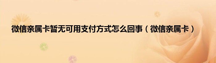 大家好,精选小编来为大家解答以上问题。微信亲属卡暂无可用支付方式怎么回事,微信亲属卡很多人还不知道,现在让我们一起来看看吧!