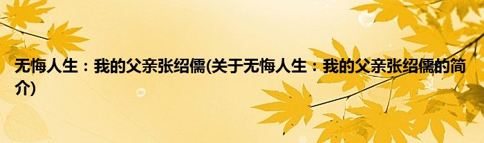 本文关于无悔人生:我的父亲张绍儒的简介就讲解完毕,希望对大家有所帮助。