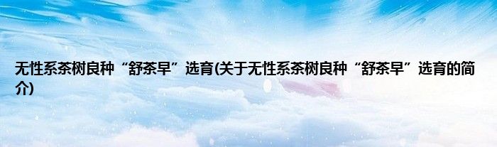 大家好,无性系茶树良种“舒茶早”选育,关于无性系茶树良种“舒茶早”选育的简介很多人还不知道,现在让我们一起来看看吧!