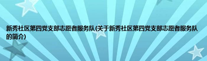 1、 新秀社区第四党支部志愿者服务队是由新秀社区领导下的志愿团体。