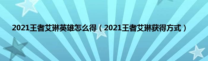 大家好,精选小编来为大家解答以上问题。2021王者艾琳英雄怎么得,2021王者艾琳获得方式很多人还不知道,现在让我们一起来看看吧!