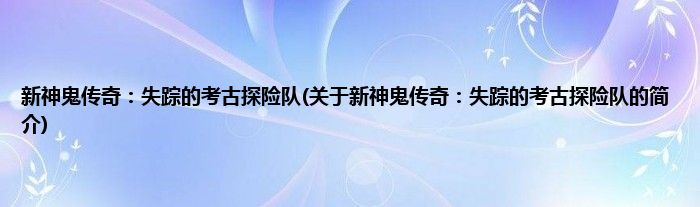 本文关于新神鬼传奇:失踪的考古探险队的简介就讲解完毕,希望对大家有所帮助。