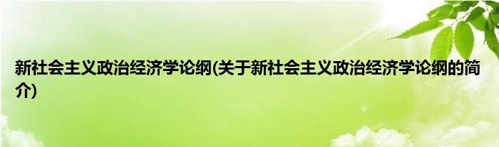 本文关于新社会主义政治经济学论纲的简介就讲解完毕,希望对大家有所帮助。
