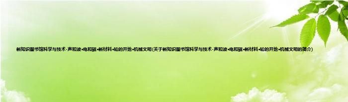 本文关于新知识图书馆科学与技术-声和波·电和磁·新材料·轮的开地·机械文明的简介就讲解完毕,希望对大家有所帮助。