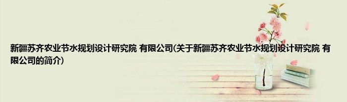 本文关于新疆苏齐农业节水规划设计研究院 有限公司的简介就讲解完毕,希望对大家有所帮助。