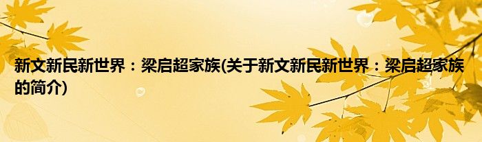 大家好,新文新民新世界:梁启超家族,关于新文新民新世界:梁启超家族的简介很多人还不知道,现在让我们一起来看看吧!
