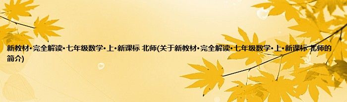 本文关于新教材·完全解读·七年级数学·上·新课标 北师的简介就讲解完毕,希望对大家有所帮助。
