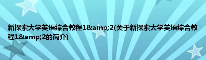 大家好,新探索大学英语综合教程1&2,关于新探索大学英语综合教程1&2的简介很多人还不知道,现在让我们一起来看看吧!
