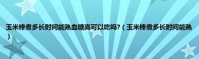 大家好,小科来为大家解答以上问题。玉米棒煮多长时间能熟血糖高可以吃吗?,玉米棒煮多长时间能熟很多人还不知道,现在让我们一起来看看吧!