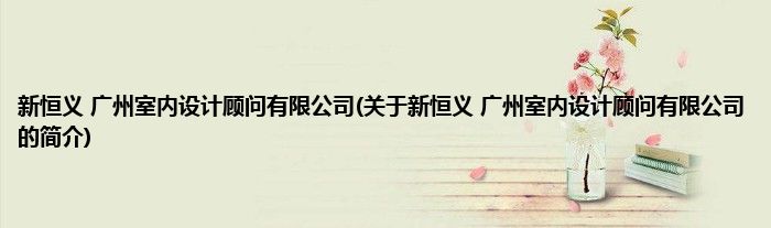 大家好,新恒义 广州室内设计顾问有限公司,关于新恒义 广州室内设计顾问有限公司的简介很多人还不知道,现在让我们一起来看看吧!